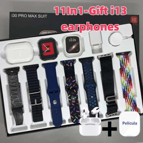 Smartwatch i30 Pro Max 11 em 1 com Pulseiras Intercambiáveis e Earphones Bluetooth